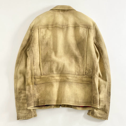 36A12 POLO RALPH LAUREN ポロ ラルフローレン 鹿革 レザージャケット ヴィンテージ加工 ディアスキン L ベージュ カバーオール