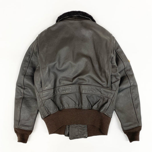 44h26 70's vintage BRILL BROS INC G-1 ワッペン フライトジャケット レザージャケット ブルゾン 71年 MIL-10077323D 38 ブラウン レザー メンズo07t