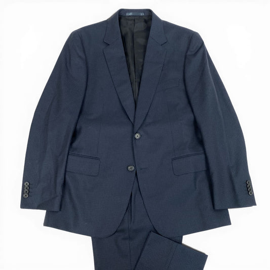 66a14【美品】 Paul Smith ポールスミス セットアップスーツ シングルスーツ 総柄 2B ウール混 日本製 メンズ 紳士服 M2 ネイビーo07t