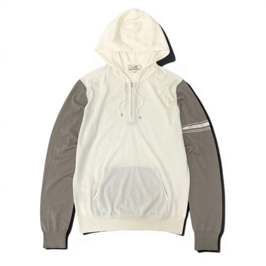 Md22 【新品保管品】HERMES エルメス ハーフジップニットフーディー ニットセーター パーカー トップス イタリア製 Lサイズ アイボリー ブラウン メンズ 男性用t18r