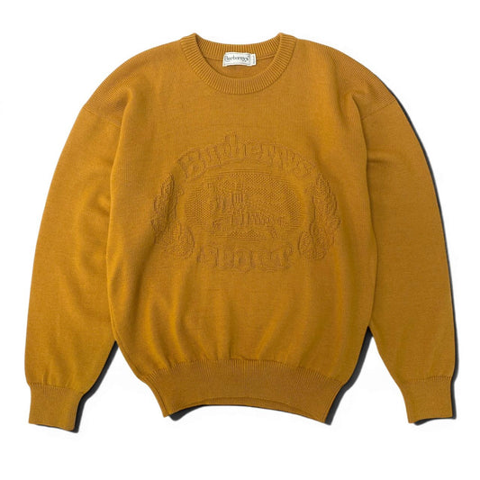 Sd22 BURBERRYS バーバリーズ ヴィンテージ バーバリーズ デカロゴ ニットセーター サイズM オレンジ系 メンズ 男性用k02i