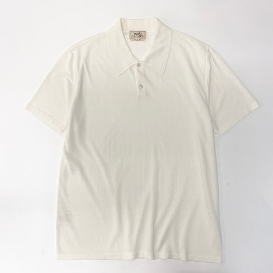 Md22 HERMES エルメス 半袖ニットポロシャツ コットンニット トップス イタリア製 Lサイズ ホワイト コットン100% メンズ 男性用t18r