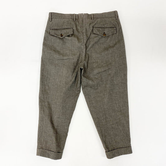 59j6《未使用タグ付き》 GIORGIO ARMANI ジョルジオアルマーニ イタリア製 タックパンツ スラックス 総柄刺繍 2タック リネンブレンド メンズ 紳士服 ボトムス 50R グレーu02t