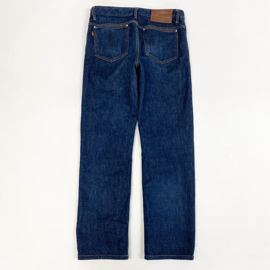 21i29《美品》LOUIS VUITTON ルイヴィトン デニムパンツ ボトムス ストレートパンツ LVロゴ刺繍 コットン イタリア製 M相当 ネイビー メンズk02i