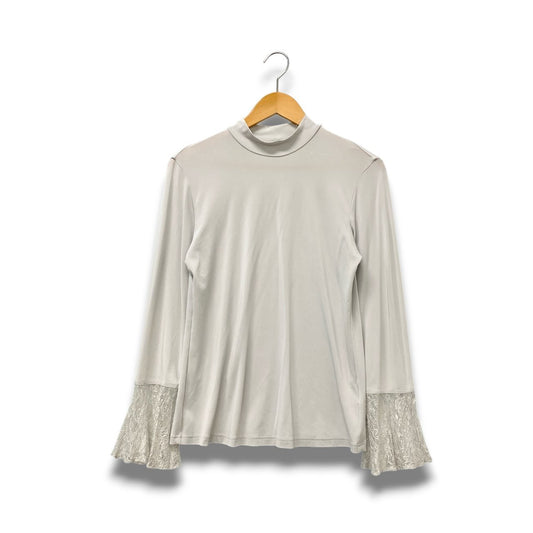 66c2 TOKUKO 1er VOL トクコプルミエヴォル モックネック 長袖カットソー トップス レーススリーブ 伸縮ストレッチ レディース 女性服 サイズ9 ライトグレーu02t