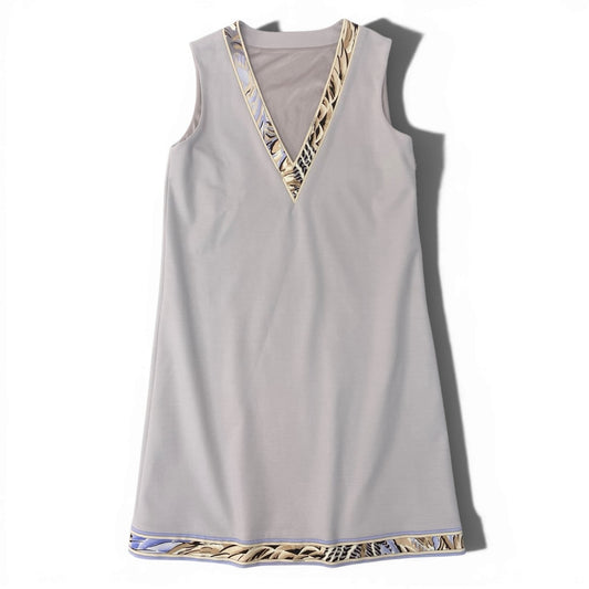 11b6【美品】LEONARD レオナール ノースリーブVネックワンピース 膝丈ワンピース 0380652 38サイズ ライトグレー レディース 女性用u02t