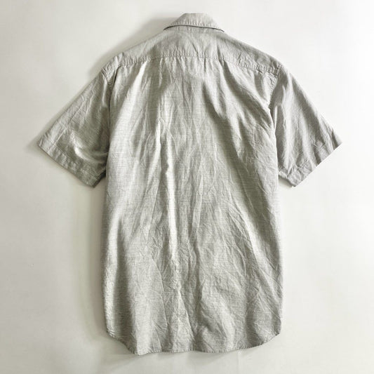 51b25 Nigel Cabourn ナイジェルケーボン ワンポイントリボン 半袖シャツ 48 ライトグレー 日本製 SHIRT ワンポケ