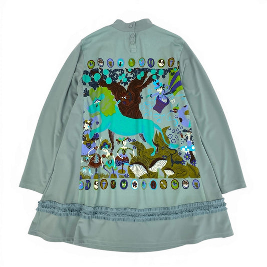 81a23 TOKUKO 1er VOL トクコプルミエヴォル 長袖ワンピース Aラインワンピース プリント ストレッチ素材 9 ライトブルー レディースu02t