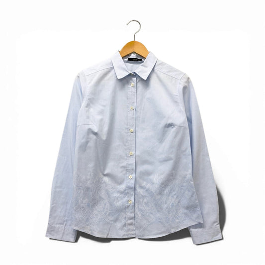 77b17 ETRO エトロ ロングスリーブシャツ ブラウス 刺繍デザイン 薄手 イタリア製 レディース 女性用 サイズ44 ライトブルー コットン100%u02t