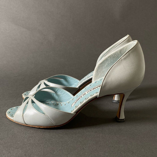 2g13 MANOLO BLAHNIK マノロブラニク オープントゥ レザーパンプス サンダル サイズ34 1/2 ライトブルー レディース