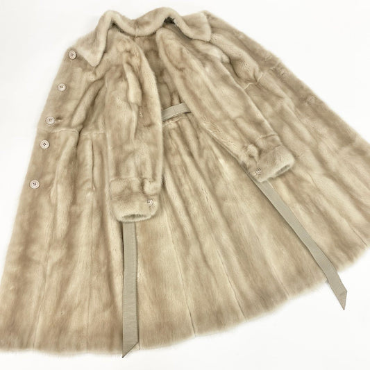 68j16 emanuel ungaro ウンガロ パールミンク 毛皮コート ファーコート 100㎝ 超ロングコート FREE ライトベージュ レディースu02t