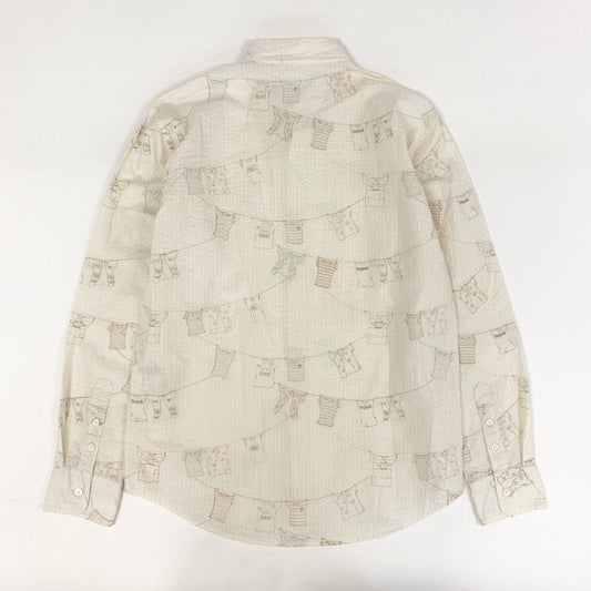 44h26 Papas パパス 総柄プリント 長袖シャツ ボタンダウン ロングスリーブ ワンポイントロゴ 46 ライトベージュ コットン メンズo07t