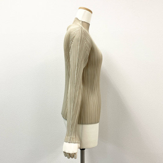 75i8 PLEATS PLEASE ISSEY MIYAKE プリーツプリーズ イッセイミヤケ 日本製 ハイネック プリーツカットソー 長袖 トップス プルオーバー PP33-JK182 3 ライトベージュ レディースo07t