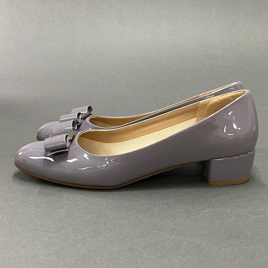 5a9 Salvatore Ferragamo サルヴァトーレ フェラガモ VARA ヴァラリボン エナメルヒールパンプス 7 1/2 ラベンダー パテントレザー イタリア製 シューズ