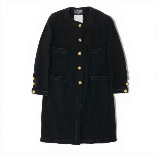 Cd9 CHANEL シャネル ノーカラー ツイードコート 金ボタン 1992SS 21172 40 ブラック レディースnu1