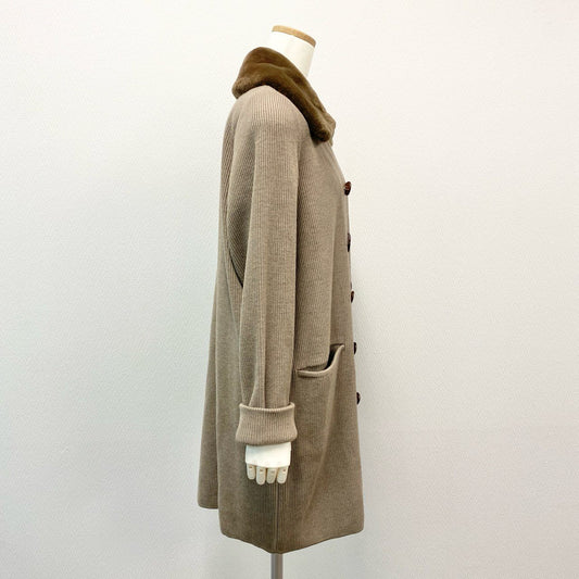 5i12 FOXEY BOUTIQUE フォクシー ブティック ヌートリアファー ニットコート ロングニットカーディガン F ブラウン系 レディースu02t