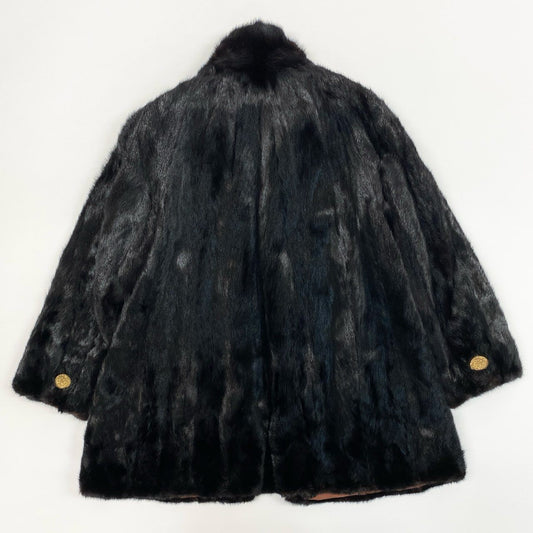 28i29SAGA MINK サガミンク ダークミンク 毛皮コート ミンクコート セミロングコート 装飾ボタン FREE ブラック レディースt18r