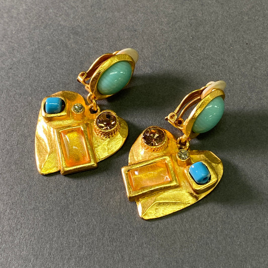 c19 Christian Lacroix クリスチャンラクロワ ハートモチーフストーンイヤリング VINTAGE ヴィンテージ ゴールド アンティーク GOLD