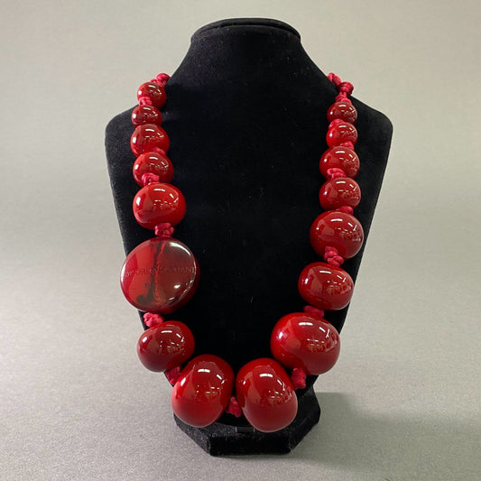 a17 EMPORIO ARMANI エンポリオ アルマーニ ビッグビーズ Tバーネックレス レッド 大ぶり アクセサリー ジュエリー マンテル