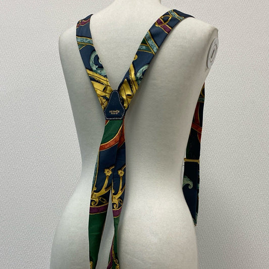 c11 HERMES エルメス スカーフ サスペンダー ネイビー シルク フランス製 カレ ゴールド金具 Vintage ヴィンテージ