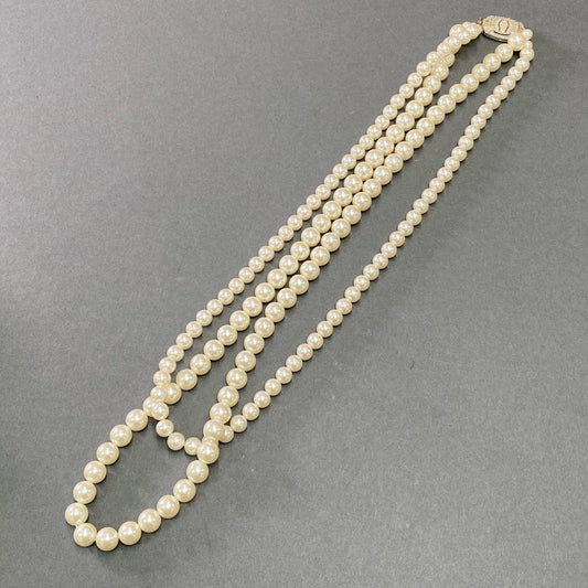 c25 【2点セット】 FOXEY フォクシー パール 2連ネックレス × カメリア ブローチ ホワイト ブラック ビジュー セレモニー 結婚式 入学式 フォーマル まとめ