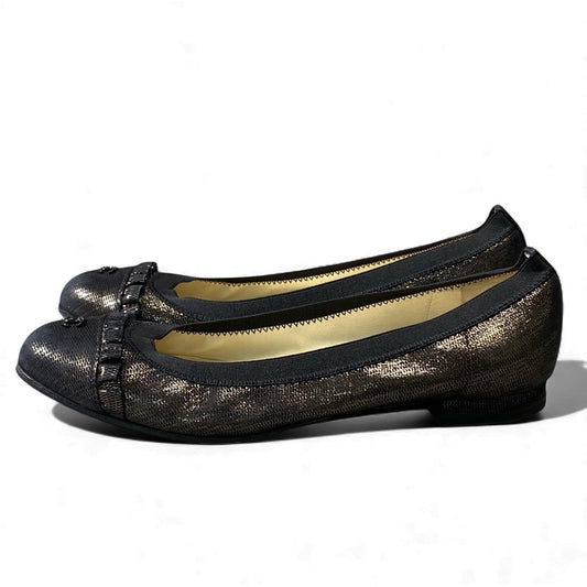 k16《美品》 CHANEL シャネル CC ココマーク ラメ入り フリル フラットシューズ G26480 37 メタリックブラック バレエシューズ パンプスt18r