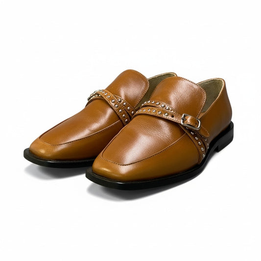1b26 J&M DAVIDSON ジェイ&エムデヴィッドソン スタッズベルト ローファー レザーシューズ レディース 女性靴 20649N サイズ35 TAN ブラウン系 牛革u02t