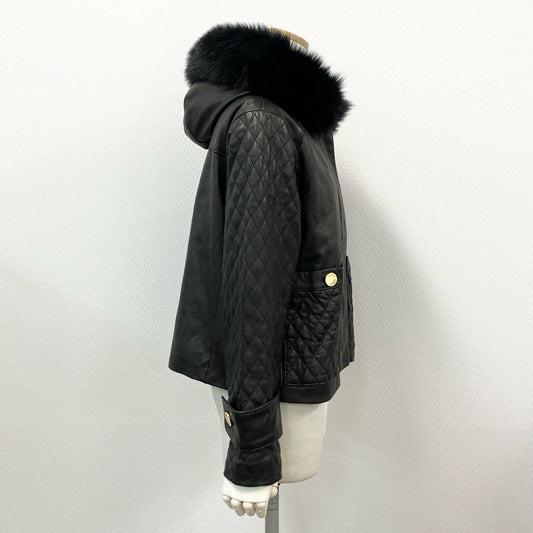 3a27 Grace Class グレースクラス フォックスファー キルティン レザージャケット 36 ブラック ラムレザー 羊革 毛皮
