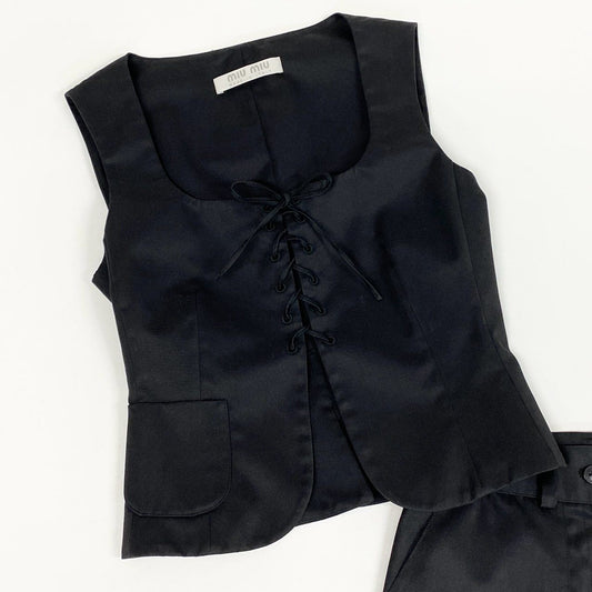 Ab13 miumiu ミュウミュウ archive アーカイブ セットアップ レースアップベスト スラックスハーフパンツ 40サイズ ブラック レディース 女性用ta1