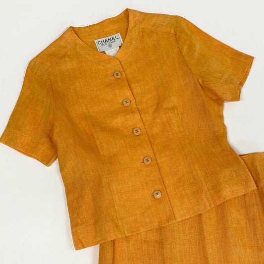 Cj3 CHANEL シャネル 96P ココマークボタン ノーカラージャケット スカート セットアップ 大きいサイズ P07001V04682 42 XLサイズ相当 オレンジ レディースo07t
