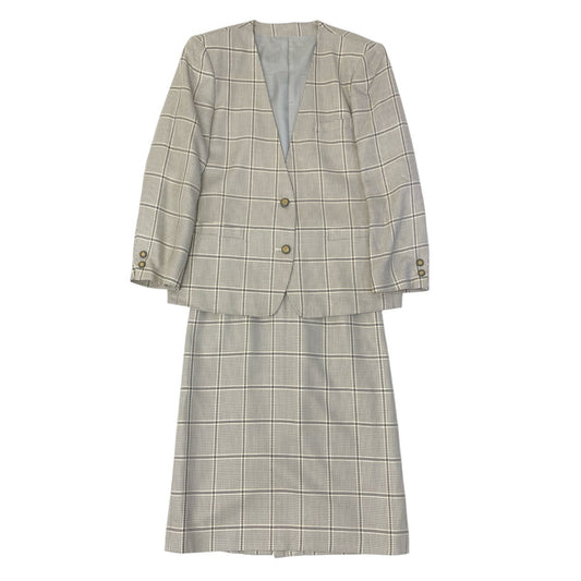 5c5 Vintage Burberrys バーバリーズ スカートスーツ セットアップ 装飾ボタン ノーカラー 11 グレー系 チェック レディースu02t