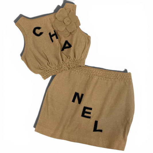 Cb15 《美品》 CHANEL シャネル 2019 ランウェイ着 ロゴ クロップドトップス スカート P61529 40 ベージュ レディースta1