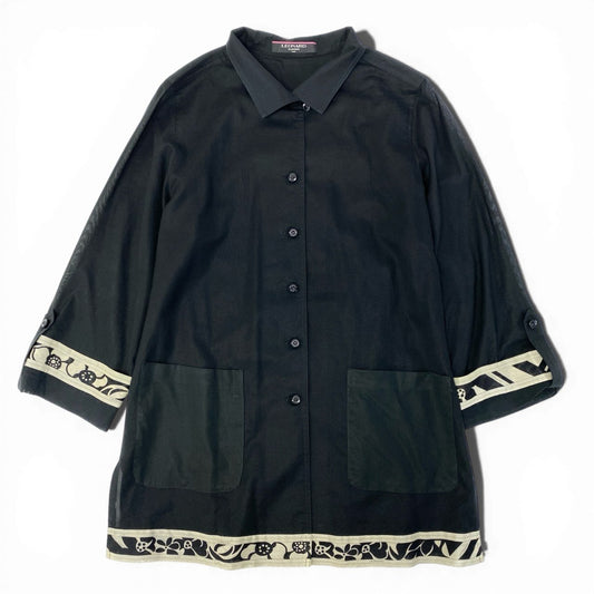 80c9 LEONARD FASHION レオナール ロングスリーブシャツ シアーシャツ レディース女性服 サイズ13R ブラック コットン100%u02t