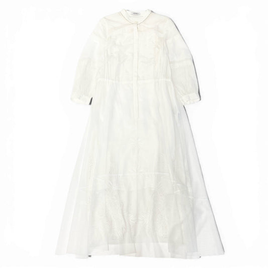 56c9 MORABITO モラビト 襟ビーズ レース×チュール ロングワンピース ペチ付き サイズ38 ホワイト系 レディース ワンピースk02i