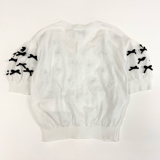 7i25 《美品》RED VALENTINO レッドヴァレンティノ 半袖カーディガン ニットカーディガン ボレロ リボン Sサイズ ホワイト ブラック レディースk02i