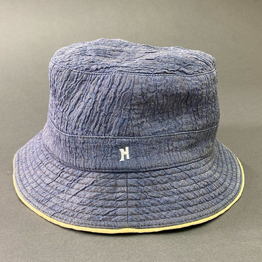 b17 HERMES エルメス 刺繍Hロゴ バケットハット 58 ブルー 帽子 シワ加工