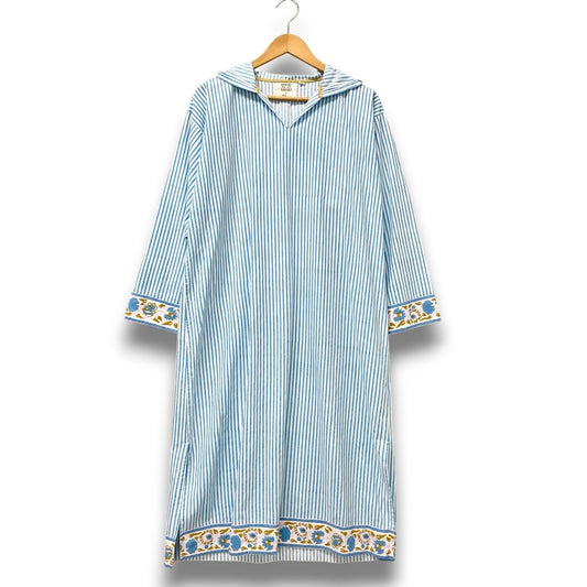 75b26 Ron Herman×SZ Blockprints ロンハーマン SZブロックプリント フーディーロングスリーブワンピース ロングワンピース ストライプ 3510300579 Sサイズ ホワイト ブルー コットン100% レディース 女性用u02t