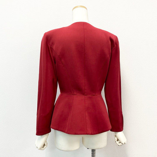 63d8-12 Thierry mugler ティエリー ミューグレー テーラードジャケット ノーカラージャケット 変形デザイン サイズ9 レッド ウール100% レディース