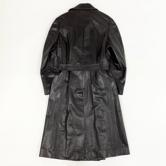 77d30 Paul Smith COLLECTION ポールスミスコレクション カウレザー ベルテッドロングトレンチコート アウター バイカラー Lサイズ ブラウン ブラック 牛革