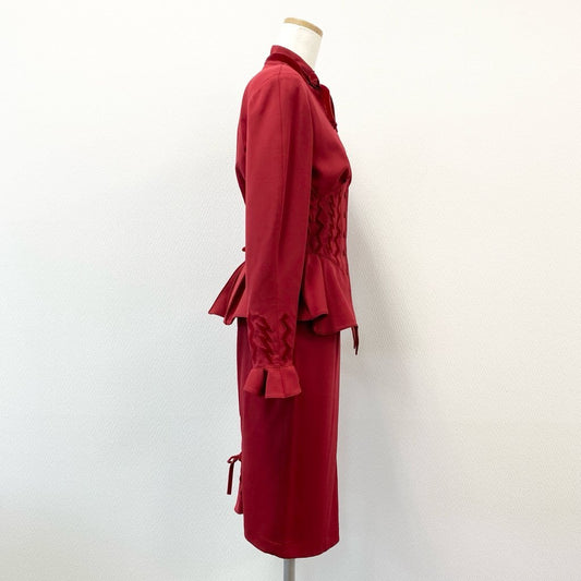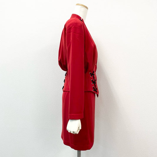 63d8-7 Thierry mugler ティエリー ミューグレー ジャケット/スカート スーツ セットアップ レースアップ 変形デザイン サイズ7AR/60-88 レッド ポリエステル100% レディース 日本製