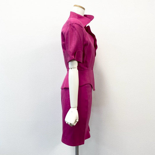 63d8-6 Thierry mugler ティエリー ミューグレー 半袖ジャケット/スカート スーツ セットアップ 変形デザイン サイズ7AR/60-88 ピンク レーヨン リネン レディース 日本製