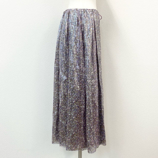 78d4 Drawer ドゥロワー ラメプリント ギャザースカート ロングスカート フレアスカート 6524-299-1539 サイズ38 パープル レディース 日本製