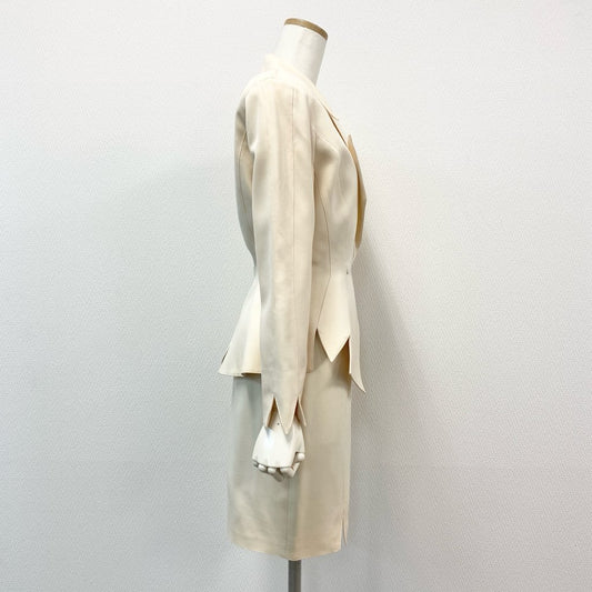 63d8-9 Thierry mugler ティエリー ミューグレー ジャケット/スカート スーツ セットアップ 変形デザイン サイズ7AR-60-88 アイボリー ウール100% レディース