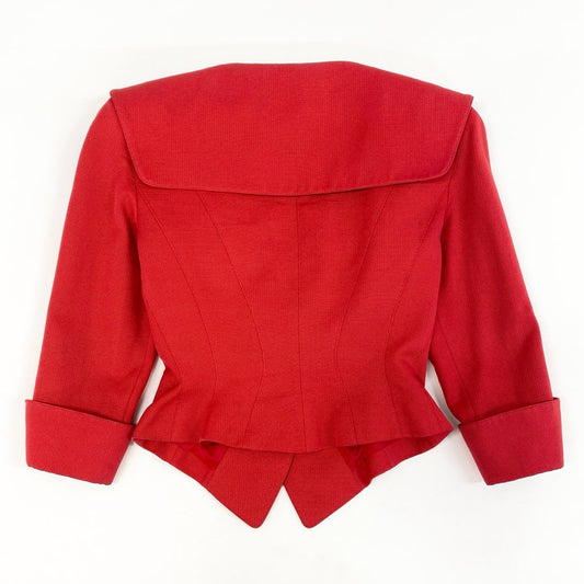 63d8-11 Thierry mugler ティエリー ミューグレー テーラードジャケット 変形ジャケット ダブル ドローストリング サイズ9AR レッド コットン100% レディース 日本製