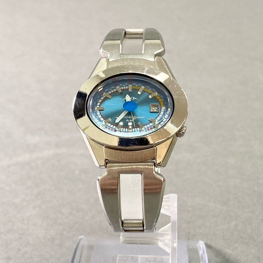a27 ALBA AKA アルバ セイコー クォーツ腕時計 デイト 3針 アナログ オーバル 1967-0624-1336 ブルー シルバー ステンレス