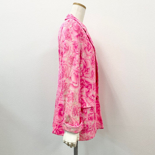 37a16 LEONARD レオナール 総シルク 美しい花柄プリント テーラードジャケット ブレザー 42 ピンク シルク100% 絹