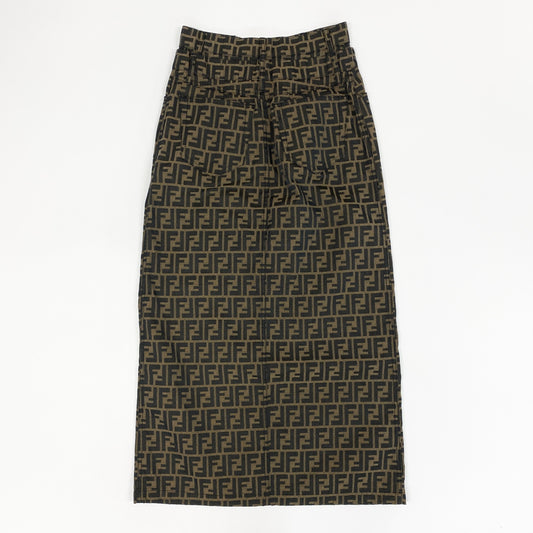 41a24 イタリア製 FENDI フェンディ ズッカ柄 ロングスカート ボトムス ダブルウエスト スリッド 42 ブラウン