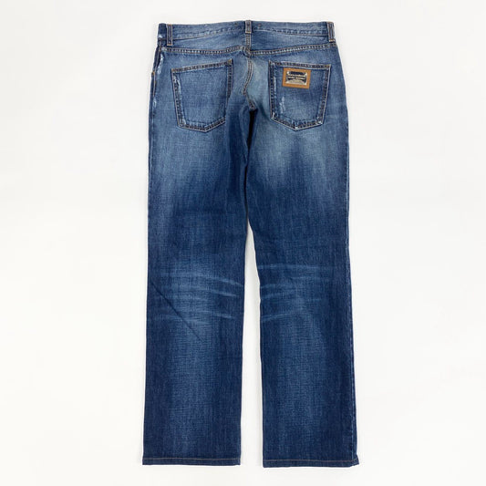13f12 《新品タグ付き》 DOLCE&GABBANA ドルチェアンドガッバーナ ダメージ加工 デニムパンツ ジーパン ロゴプレート 5ポケット G3FBTP サイズ48 インディゴブルー コットン100% メンズ 紳士服 イタリア製