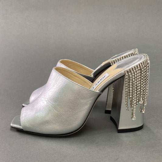 6a9 JIMMY CHOO ジミーチュウ Baia 100 クリスタルフリンジ メタリックレザーサンダル 36 シルバー Leather イタリア製 ラインストーン シューズ 夏