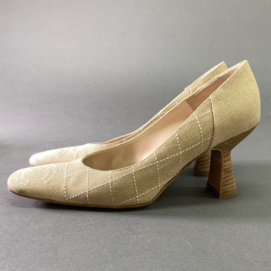 3l20 CHANEL シャネル ココマーク チョコバー ステッチパンプス 35 1/2 アイボリー イタリア製 シューズ 靴 箱付き